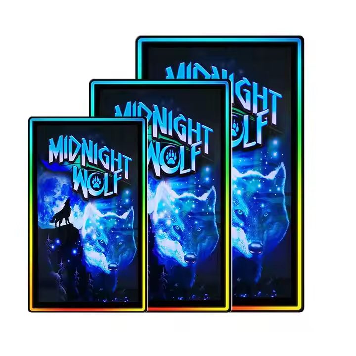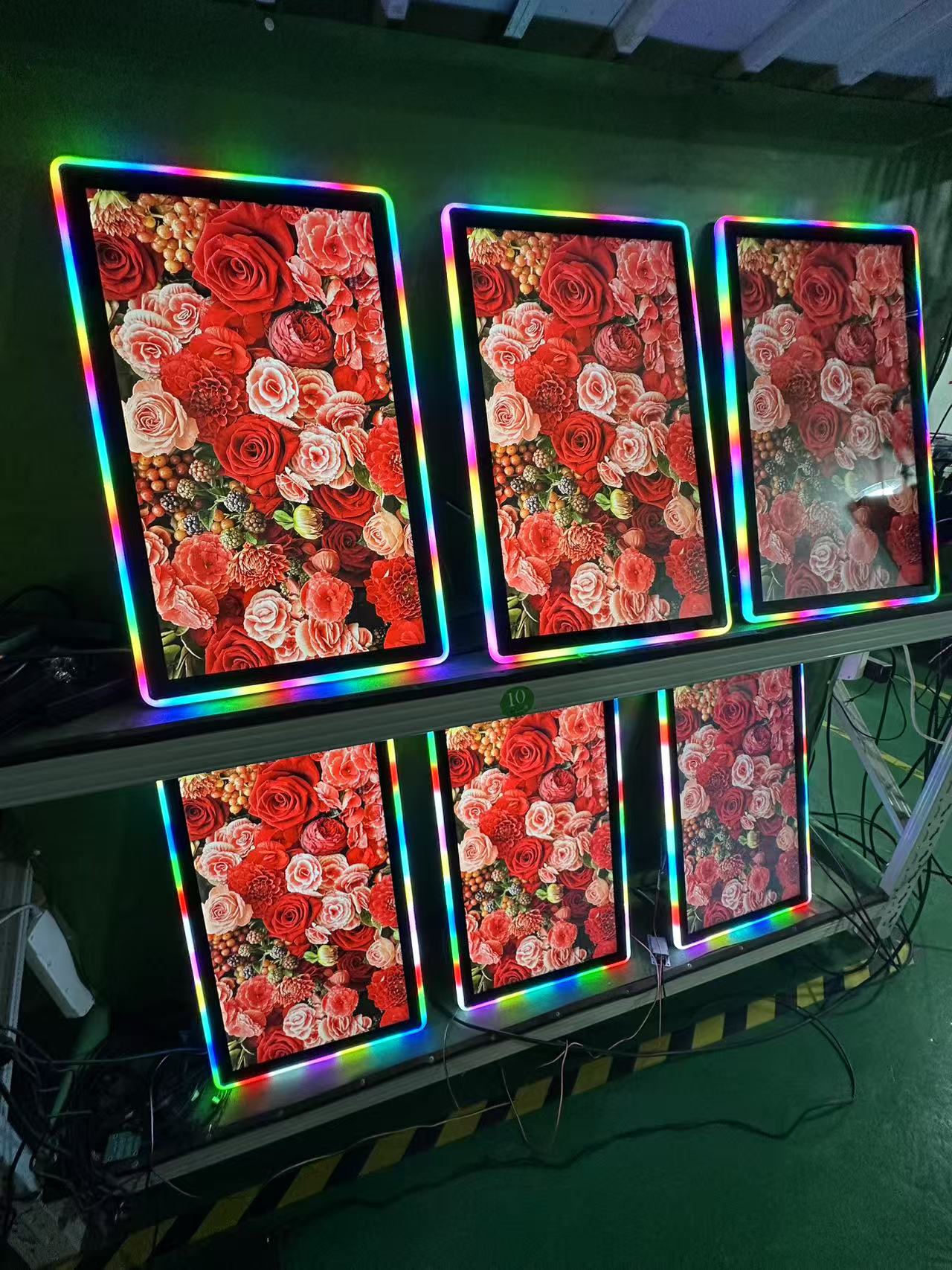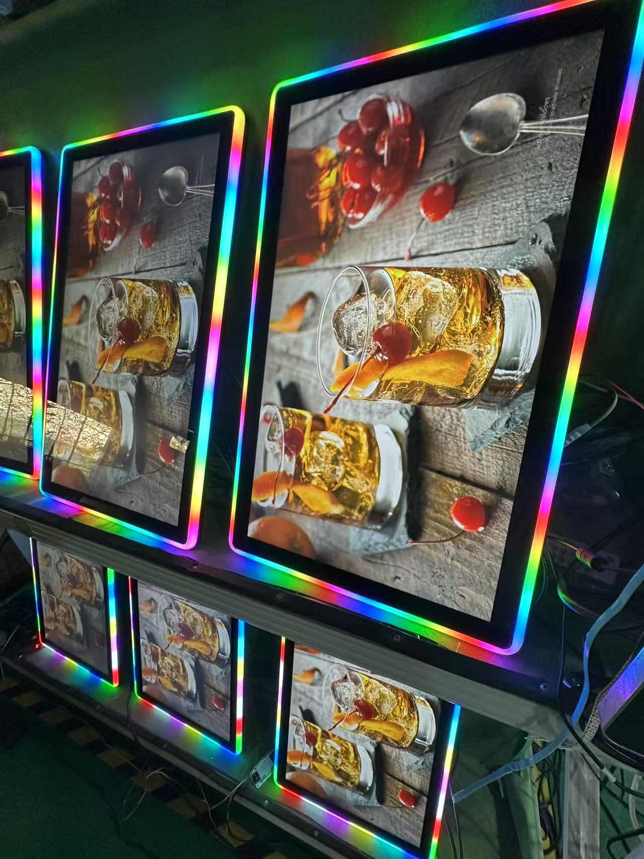 Náš nově přizpůsobený 27 palcový kapacitní monitor dotykové obrazovky s LED RGB, hlavně používaným v publikování reklamy, herních strojů, kapacitní dotykové obrazovky s LED světly pro hry.