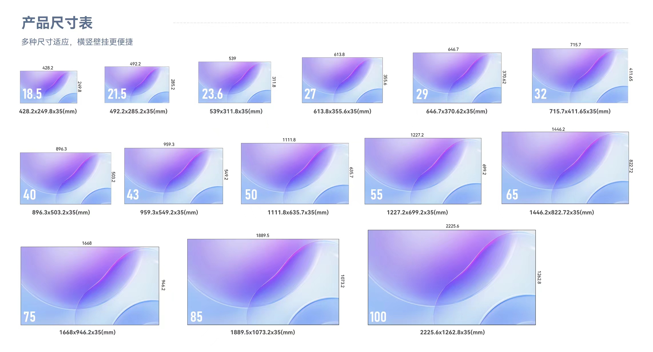 | Velikost obrazovky LCD | 21.5/32 "/43"/50 "/55"/65 "Volitelné |